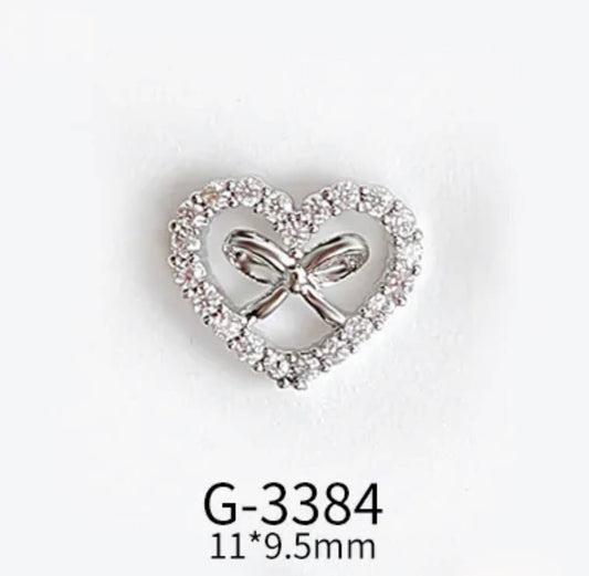 Nail Charm 3D Dimond Heart with Bow 2 pcs/bag