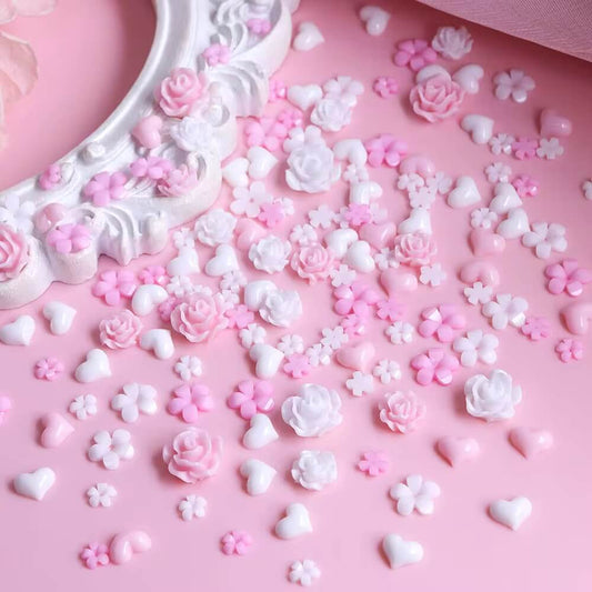 Nail Charm Pink Heart Design with Rose Flowers