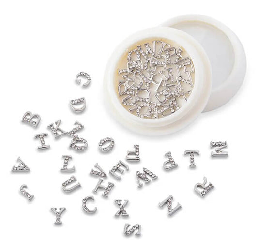 Nail Charm Letters Rhinestone Gold Silver Rosegold 26pcs/Jar